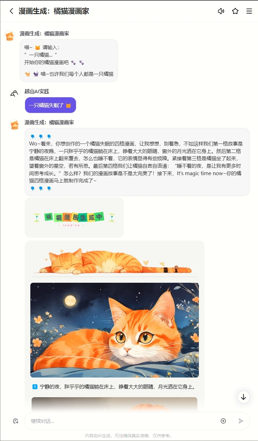 根据提示,生成可爱的橘猫插图,和故事说明。