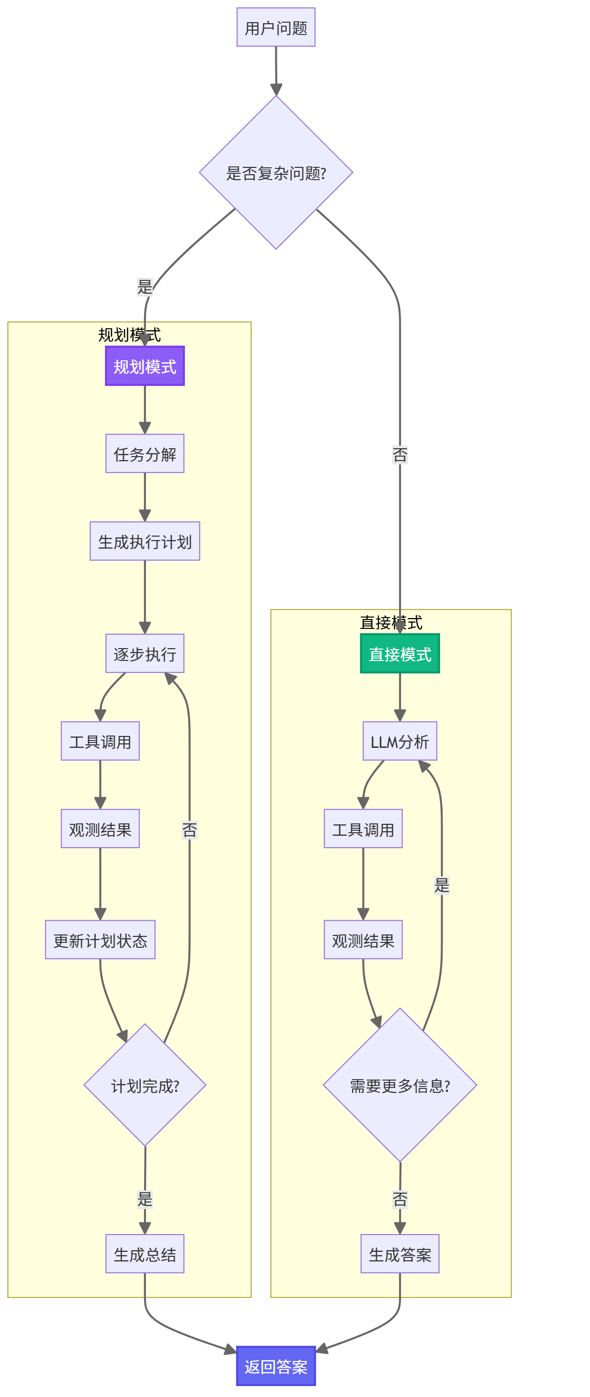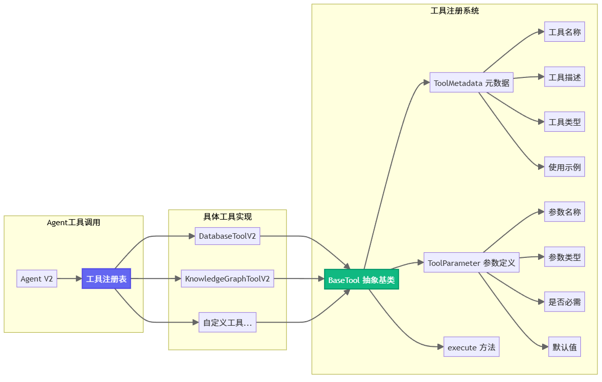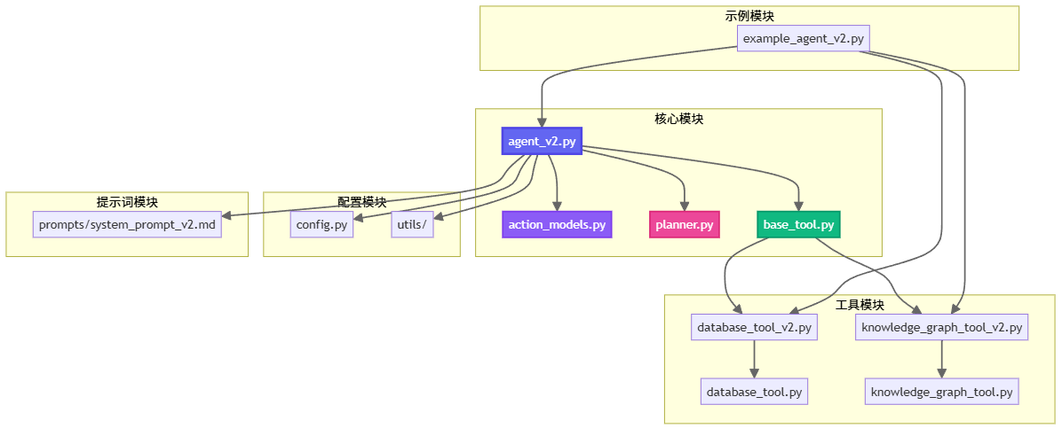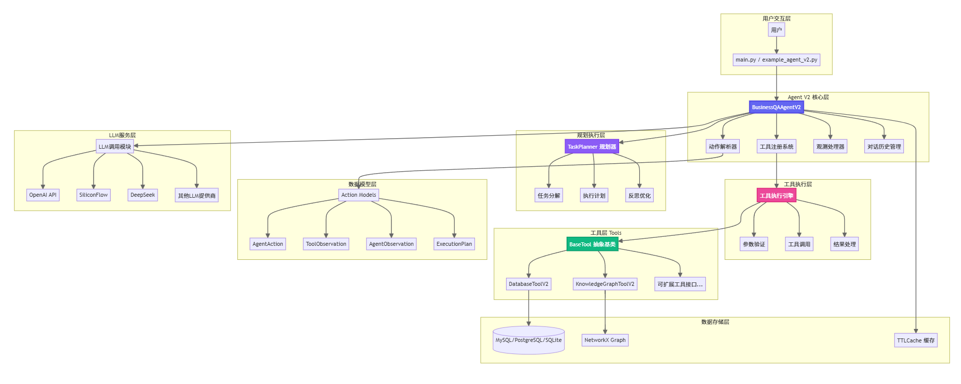 这个架构图展示了Agent V2的完整设计,从用户交互到数据存储的每一层都有清晰的职责分工,形成了一个现代化、智能化的Agent系统!